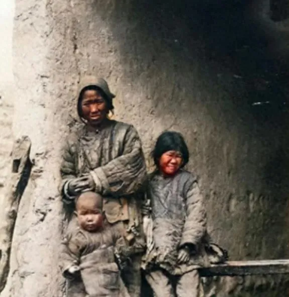 这张土屋门口的合影,很沉,墙皮起了碱,衣裳直直地挂在身上,手背上一层泥,孩子眼眶红,像刚哭过两声,没有台词,只有风从巷口往里灌,现在看着,只能在心里说一句撑住。