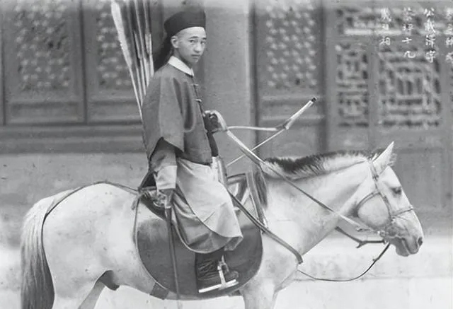 这个小伙子穿着箭袖长袍,坐在马背上,背后的箭壶斜着插,缰绳拉得稳,马鬃顺着脖颈贴下去,爷爷说以前侍卫讲究骑射两门硬功,冬天练靶手冻得直哆嗦也不敢松,现在看骑射多半成了表演,可身板立得直的样子还挺提气。