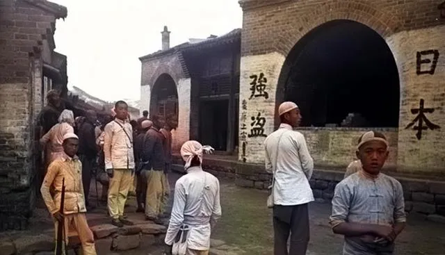 图中这些汉子戴着白头巾,肩上棍子刀把都有,墙上刷着字,门洞黑着口子,大家站在街心听安排,谁家米缸还剩多少,谁今晚去站岗,都是一句话的事,奶奶说那会儿夜里风紧,头巾一勒就出门。