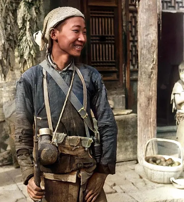 这个小伙子就是八路军通信兵也可能是警卫员,灰蓝旧衣服糊着尘土,腰间挂壶挂袋,枪栓擦得亮,笑起来牙一排白,眼神像火苗子,那时候鞋帮子烂了就拿麻绳缠住,现在看着这笑,心里一下子就热了。