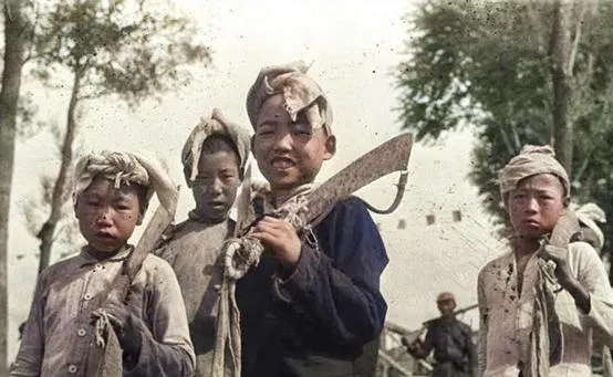 图里的孩子举着大刀片,手腕细,眼睛却不打怵,后面还有两个嘟着嘴的,队里有人喊口号,他笑出小酒窝,我妈说她当时也跟着摇着拨浪鼓送粮去,路边土飞起来,心还是敞亮的。