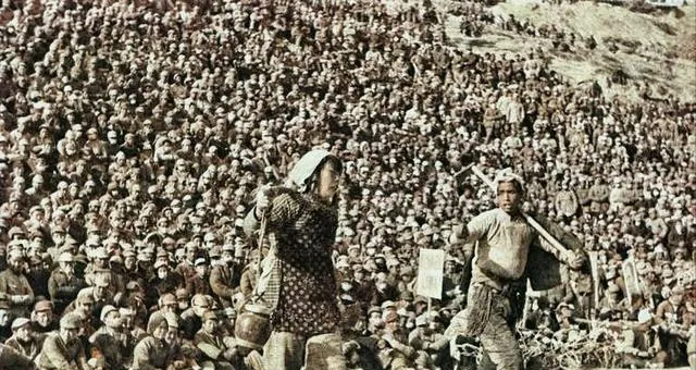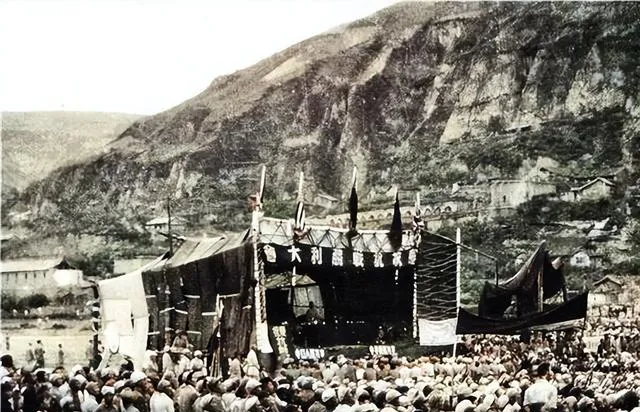 场上黑压压一片是动员大会,台子立着黑布幔,旗子拍着风响,台下有人举着水壶有人扛着镐头,讲到要紧处,全场跟着应一声,土坡都在回音,以前靠一把嗓子就能把劲聚起来,现在喇叭多了人却不一定更近。