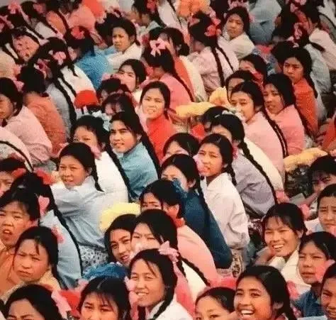 这一片长辫子就是那个时候的风景,女孩们坐成一片,黑辫子从肩上一溜垂下来,粉色蝴蝶结扎得服帖,阳光一打油亮亮的,我妹那会儿最怕拆辫子梳头,妈妈手快,辫梢一扭一抹,几分钟就利索了,现在烫染花样多,清清爽爽的一根长辫倒成了少见。