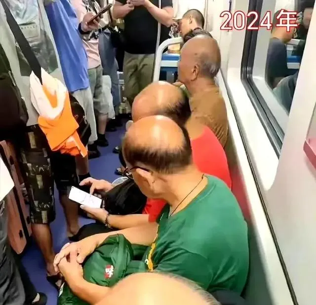 这一左一右的两张对比图把人看愣了,八二年的街口人海里个个头发茂密,油亮得跟抹了膏似的,到了现在地铁车厢里秃顶的多了,坐着玩手机眼神往下垂,四十年一眨眼,可能是洗护变了,可能是作息也乱了,反倒让人怀念那会儿的慢和实在。