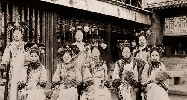 这张宫门外的合影,髻高钗满,衣料厚重,团扇一压气定神闲,站在廊下的人神色拘着却不冷,窗棂子上的纹样一看就是细作,过去讲排场讲规矩,可真落在衣食住行上,也还是一日三餐的烟火味儿。
