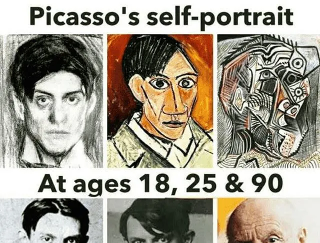 这张连排的头像变化挺妙,线条从老实到跳脱,颜色从灰到烈,眼神却一路盯人,像跟自己较劲,也像跟时间赌气,画到后头手更稳心更野,人这一辈子,认准一件事,慢慢做下去就有了样子。