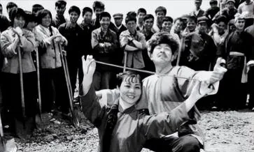 图里这场边干活边看节目的是乡下常见的社戏架势,锄头一靠地,人就围成一圈,两个年轻人抡着家伙比划得带劲,脸上汗还没退表情倒是敞亮,小时候我跟在大人身后挤进去,谁喊一声好,旁边就跟着笑,以前下地累不怕,凑到一块看个热闹就把困倦撂下了。