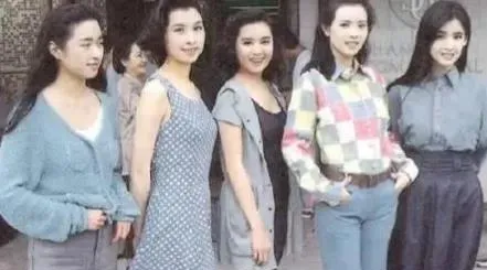 这张合影里五位都笑着,衣裳颜色轻快,条纹格子都来,站在街口风一吹,像刚从录影棚里出来,那个年代的妆发不费事,眉眼干净就够了,后来流行美颜和滤镜,反倒把人的灵气磨没了。