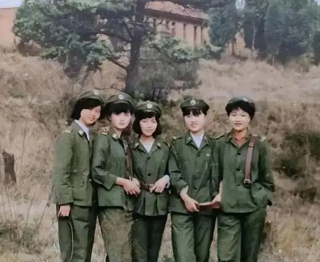 荒坡草黄,五位女兵肩带整齐,站位靠得很近,像刚从训练场撤下来,手心还热着,谁把相机举起来说来一张,大家齐齐看镜头,那一刻的意气风发,被天气和土腥味一块儿收住了。