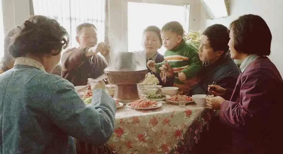这个铮亮的家伙叫铜火锅,肚子圆鼓鼓,中间冒着白汽的小烟囱,炭火一旺,锅沿咕嘟咕嘟响,菜盘子一圈围着,红白相间的羊肉片、粉丝白菜香菜,一家人伸筷子下去涮两下,蘸芝麻酱就入口,姥爷那会儿总念叨,冬天吃铜锅才叫过日子,现在电磁炉一开谁还折腾炭火,味道是便捷了,可那股子炭火的香气真是难找回来了。