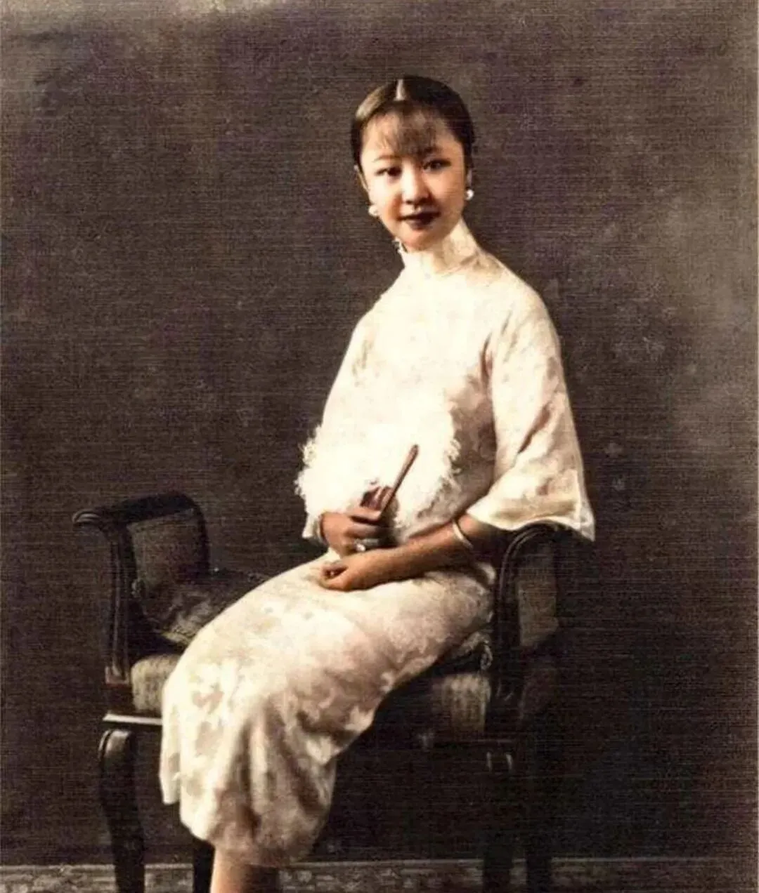 这个坐在雕花椅上的叫影楼雅照,浅色旗袍配羽毛扇,耳坠小而亮,手腕一圈细镯,脚下地毯是暗纹的,姿势收得很住,不多也不少,像茶泡到第七道,清清的,后味还在。