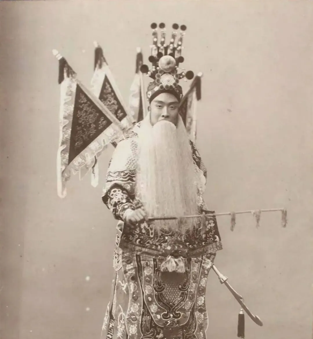 这个行头叫戏曲靠旗大盔,盔顶绒球一串串,披挂绣龙绣狮,最抢眼的是那把长长的髯口,甩起来像刷子,台下小孩就等着他一甩三抖,师傅说这叫“髯口功”,不是谁都敢玩,灯一亮,锣鼓一响,人还没动,气势先到了。