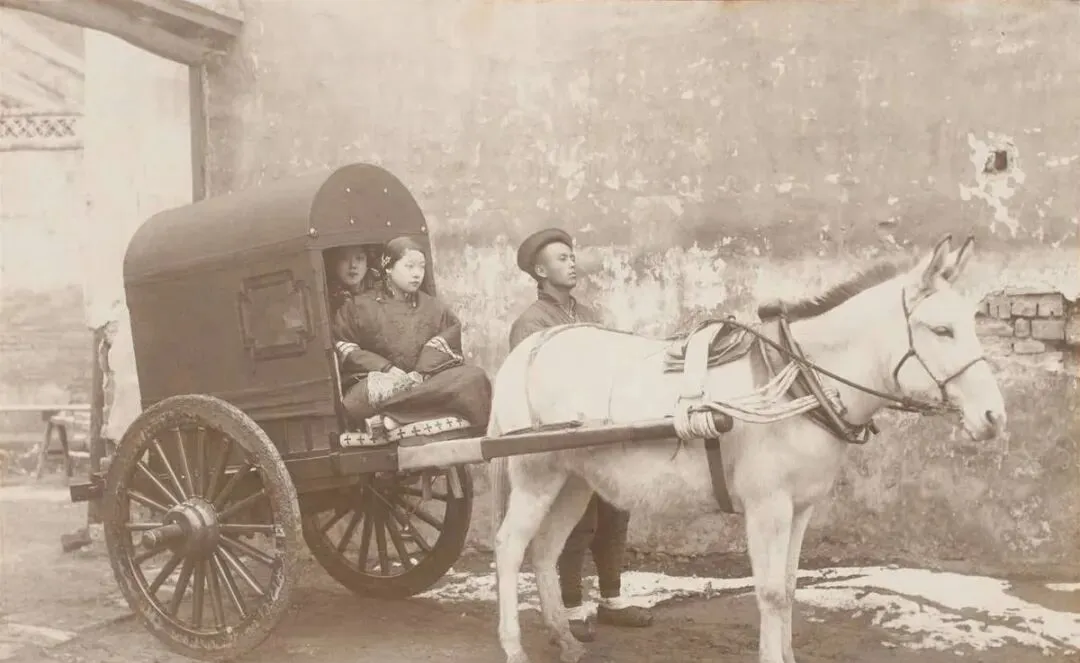 这个交通工具叫小辇车,单杆套在驴身上,后箱是木拱顶,钉子露着头,车条一根根箍得紧,冬天路上有薄冰,车夫要捏住劲儿,手一松就打滑,车里的人裹着棉袍,窗口开个小方洞探风,冷风往回一钻,人反倒醒了。