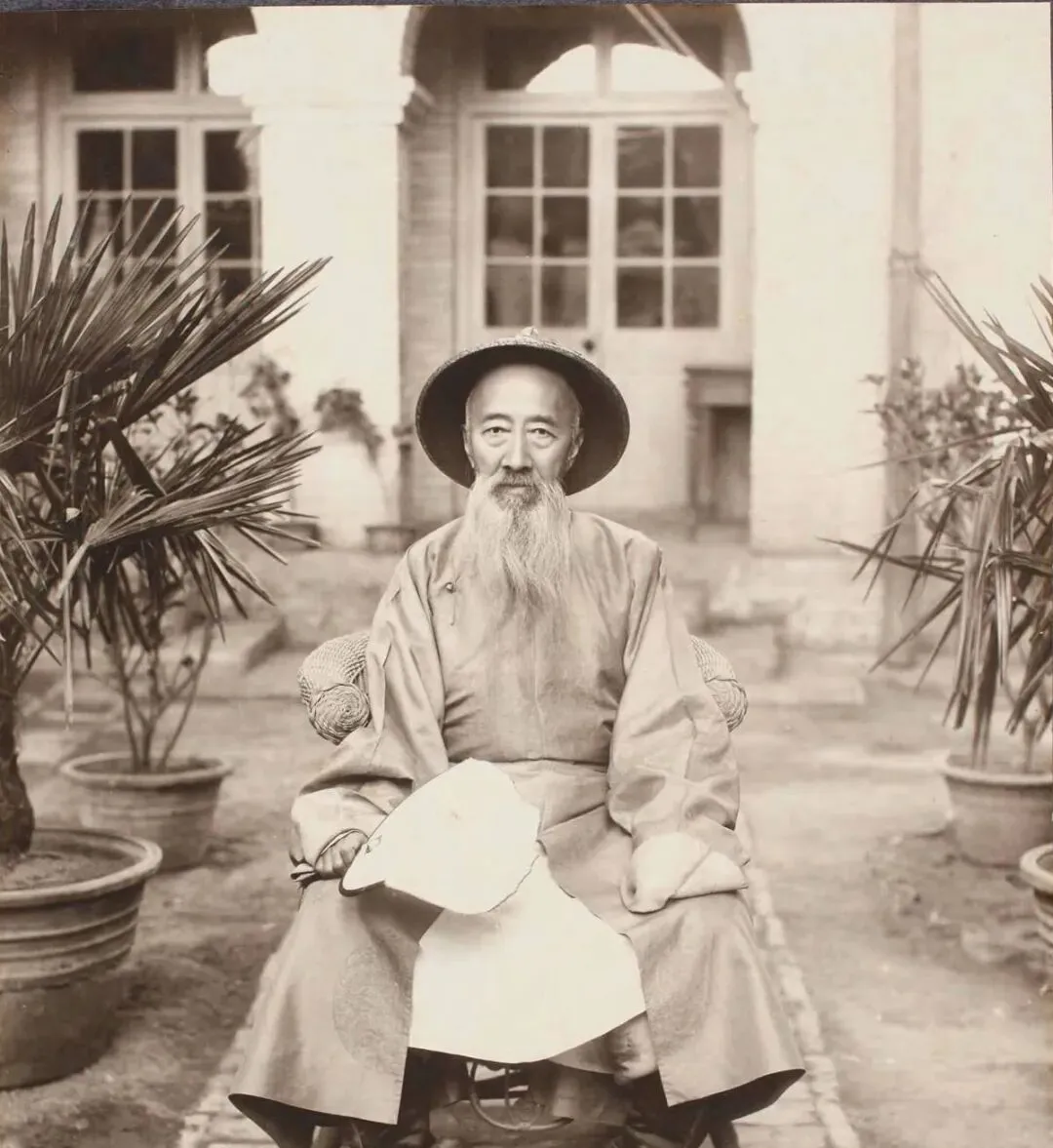 这位长者坐着的是藤靠椅,手里团扇边上露出折缝,身上是宽大的直裾袍,胸口别一枚别针,帽檐压得低,院里两盆棕榈分列两边,阳光打下来,胡须被照得发亮,姥姥说老先生这样坐半日,茶凉了也不急着换,讲究个气定神闲。