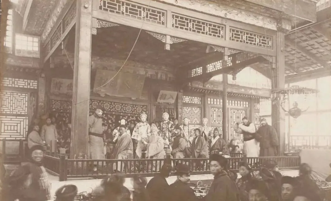 这里是茶楼戏台,雕栏画栋撑着屋顶,台口挂着掌灯,戏班在上边唱水磨调,底下的客人端着盖碗,闻锣点儿就知换折,伙计挎着提篮拐来拐去,嘴里喊着“糕点儿热乎”,有人抬眼看戏,有人低头掰瓜子,噼里啪啦是另一出场面。