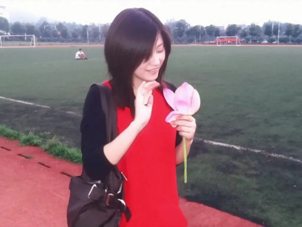 如今再翻出这张旧照,操场依旧,荷塘依旧,只是当年那个捧着荷花、素面朝天的女孩,已经在岁月里渐渐成熟。