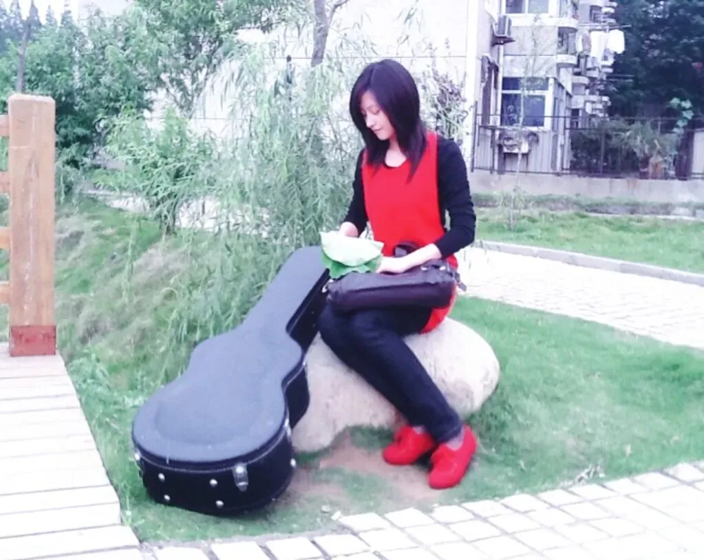 从练功房出来,我背着沉甸甸的吉他在校园里闲逛。路过荷塘,早开的荷花三三两两地把头从田田的荷叶间探出来,粉粉嫩嫩的,惹人爱怜。和同学小心翼翼地下到水边,拔了一杆荷叶当凉伞,实在耐不住早荷红扑扑的面颊,又采了一朵荷花。
