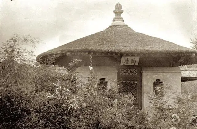 这个小亭埋在乱石中,屋檐矮而厚,窗棂拼着回形,门上一方匾,墨迹还湿似的,台阶边几块石板斜倚着,像随手一放,却又不显凌乱。