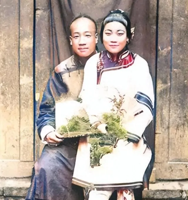 最后再回到那对新婚的笑,发髻上插着小花,团扇里夹着绿枝,袖口的滚边像两道细雷,一张纸把一屋子的热闹封住,镜头外头也许有人提醒靠近一点,也许有人咳了一声装正经,事情过去这么多年,照片还在替他们把日子端着。