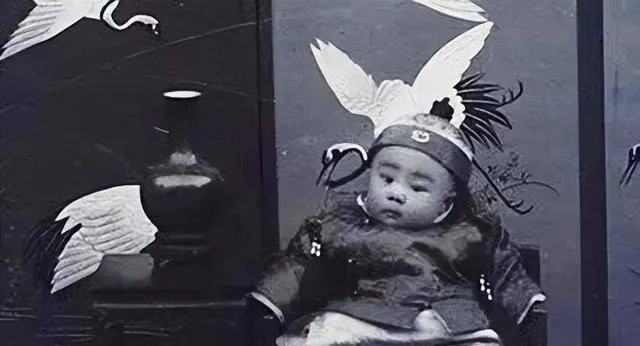 这张里头的娃儿戴着小帽子,后面立着鹤纹屏风,桌上一只瓶,一看就是讲究人家留念的样子,帽沿上缀着亮线,衣服鼓鼓囊囊,手背胖得抠不出指节,镜头把安静也留住了。