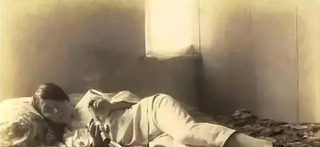 这位女子斜躺在铺上,身边摆着一只小物件,光从窗边斜进来,脸上不见笑,像在等谁又像在想事,衣料薄而软,手腕垂着没有首饰,照片把那份寂静留得很足,隔着这么多年还有股凉意。