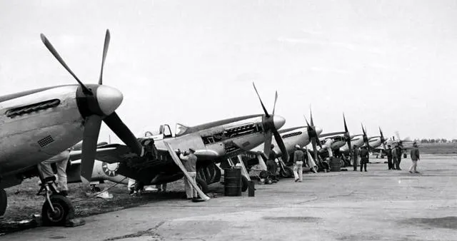 这个长翅膀的家伙叫野马战机,机鼻细长,起落架像两条小腿杵在地上,几架排成一线,地勤围着拎桶拧螺丝,螺旋桨没转时也带风,爸看着就爱讲一句,以前天上吼过去一群,现在手机里滑两下就能看见,声音却听不见了。