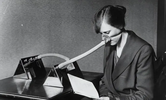 这个像两端铁三角架夹着一根软管的家伙,是用来吸气的装置,鼻梁上挂着扣,管子接到桌上的小箱里,坐着的人翻着一本薄册子,表情淡,屋里静得能听见翻页的声儿,那时讲究强身的法子千奇百怪,妈妈看见照片笑了一下,说像我们小时候用的拔罐,不过换成了鼻子。