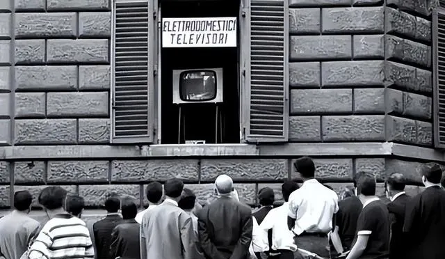 窗台上支着一台小黑白电视,下面一群人仰着头,店家的横幅写着家电字样,画面里像在播比赛,脖子抬久了也舍不得挪脚步,爸爸说第一回在供销社看转播,他站在人群最后头,节骨眼上有人喊进啦,全街像打雷一样炸开,这热闹现在用手机能重来一遍,可味道淡了点。