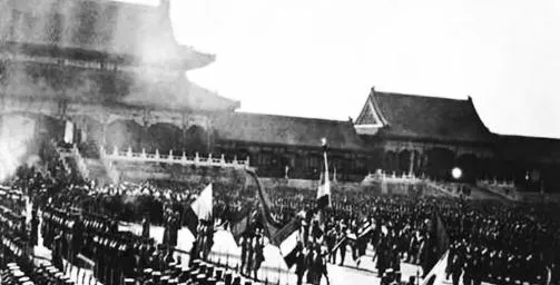 这是在紫禁城里头排起的队伍,旗面子一大片一大片亮起来,城楼影子把地面切成两半,枪管在阳光下一闪一闪,整齐的脚步声似乎能从黑白缝里钻出来,历史书里一句话带过的阅兵,真摆到你眼前,才知道那阵仗有多满。