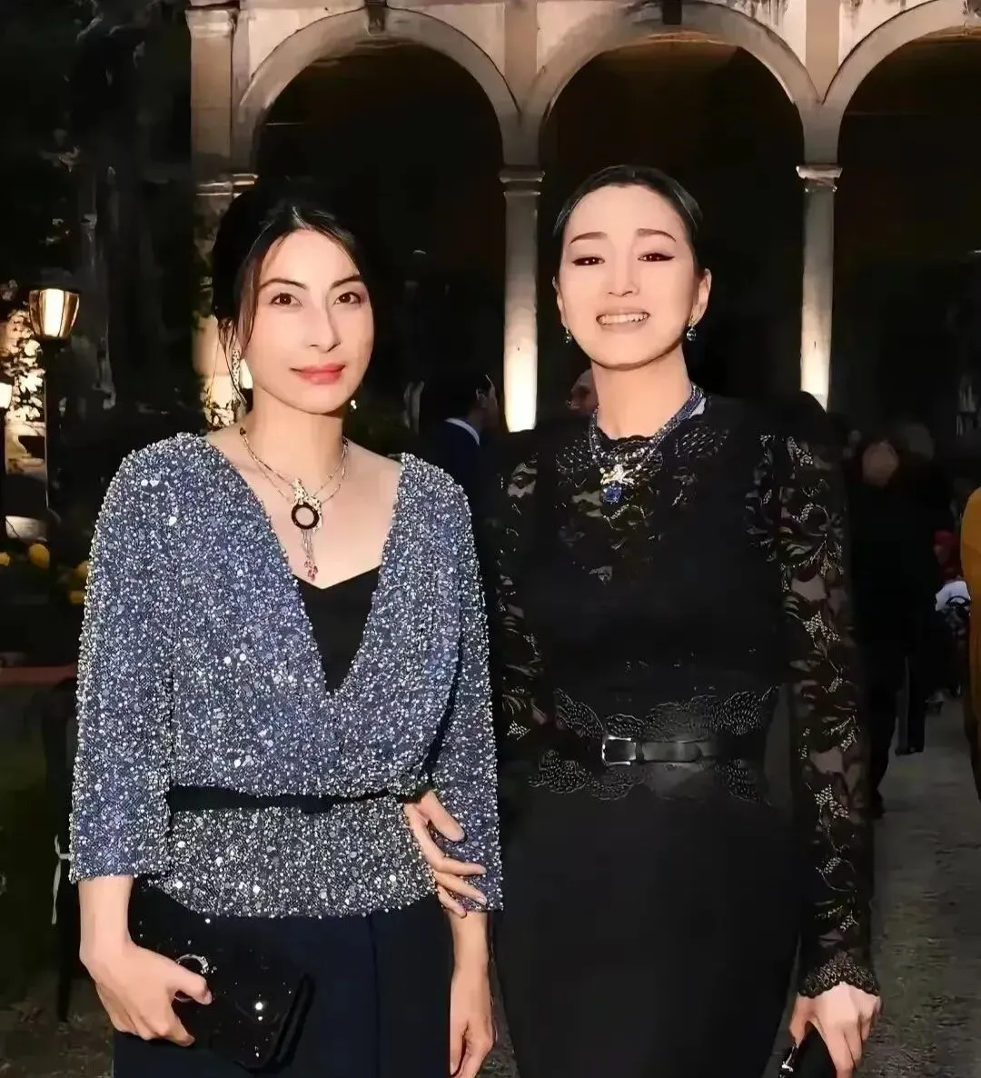 这个相拥的瞬间叫各美其美,卷发松松垮垮披着,黑裙叠褶,耳饰一摇一点亮,侧身靠过来,礼貌又亲近,合影这种事,有的人容易被压住,她从不,气场说话,镜头自己会听。