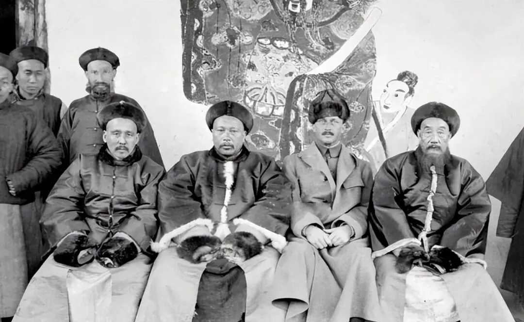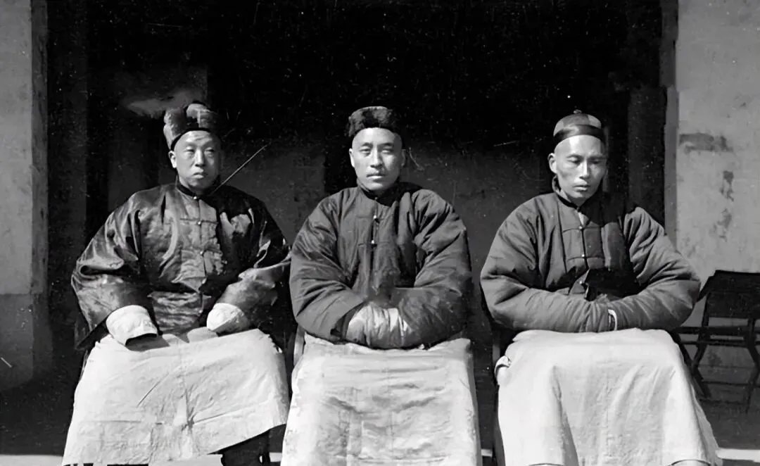 这几位身上的厚袍叫皮袍官服,滚着宽宽的毛边,黑缎面子在冬日里发着闷光,胸前补子一亮,是个讲究的主儿,坐下手心里还捂着一副手炉,老照片没声儿,可你仿佛能听见他清嗓子的那一下,咳一声,开讲了。