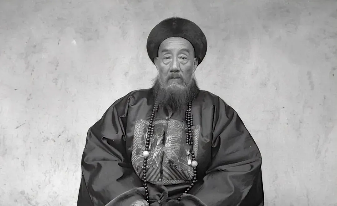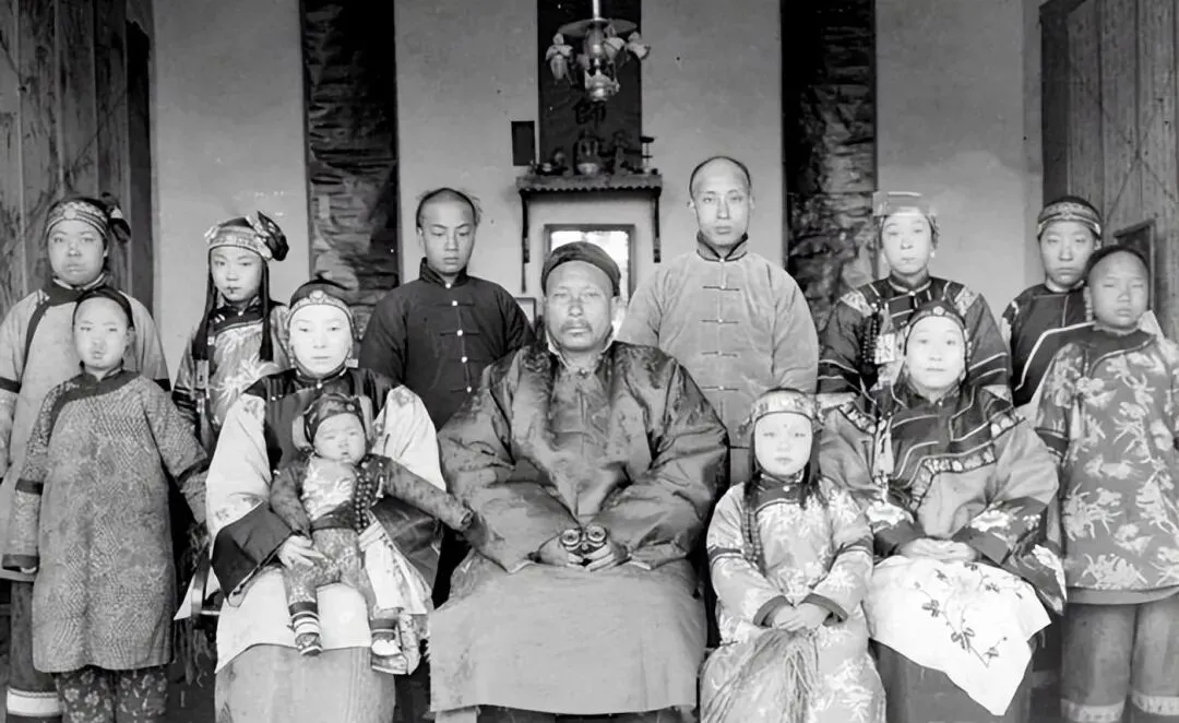 这位胸前串着的珠串叫朝珠,坠子垂在补子之上,黑呢团领把脖颈裹得严严,胡须梢子分成几绺,静静垂着,背景是素墙,没什么花样,越是素,越显得人精神气儿往外冒,妈妈看见照片笑,说这打扮在那会儿可显正经。