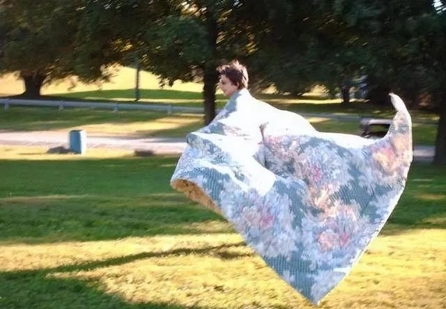 这张有点意思,远看像人披着被单飞起来,近看不过是风借了力,角落的草被压出一道道,像笑话一样的画面,翻着翻着就松了口气,照片里也能装下玩笑。