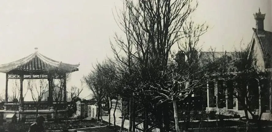 这张院子照叫提督寓所,右边是西式小楼,左边一座中式伞亭,树梢被修成圆头,地上是碎石路,屋脊兽端坐,窗台石花纹规整,屋里有一张硬木书案,案上压着航海图,夜里得点煤油灯看,风从窗缝挤进来,灯芯抖两下又稳住。