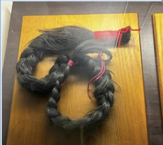 图中这绺头发叫辫子,黑里透亮带着油光,末端缠了红线紧紧勒住,一看就知道不是随手一剪的物什,辫子在当年不只是发式,是身份和制度的尾巴,剪下去那一下子不疼却重,长辫搁在木板上,灯一打能看见发丝起伏,像还在呼吸,我外公说老北京街头一夜之间短了好多脑后的尾巴,清早风一吹,肩膀都轻了。