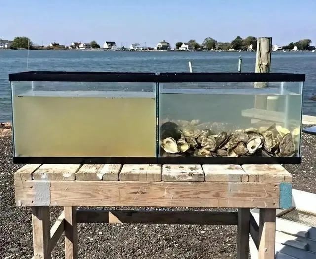 这个玻璃缸左浑右清,靠的就是牡蛎,壳堆在一侧像一堆石头,水过一遍就澄了不少,海边干活的老辈子说,牡蛎是水里的清道夫,可吃也能净水,两头都占了便宜。