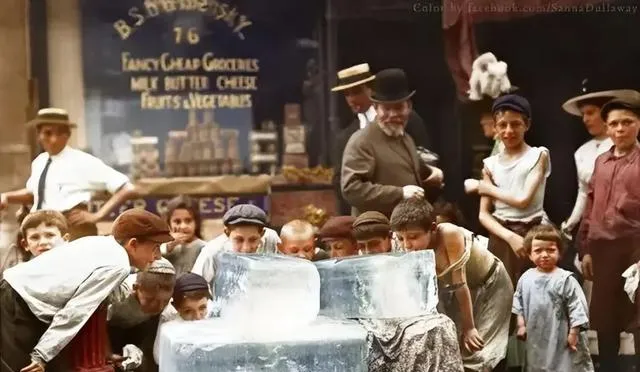这群小孩围着一大块冰,夏天还没空调的年月,舔一口就透心凉,手掌贴上去一会儿就发红,笑声在巷口打转,旁边的伙计拿铁钩子敲下一角,孩子们一窝蜂上去分,简单却痛快。