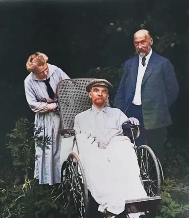 这张脸色蜡白的人坐在椅子上,旁边的人神情沉着,第三次中风后的沉默就落在这一刻了,衣襟整整齐齐,帽檐压着眉,树影打在地上,时间忽然慢下来,历史书里的一行字,到了照片里就变成了呼吸。