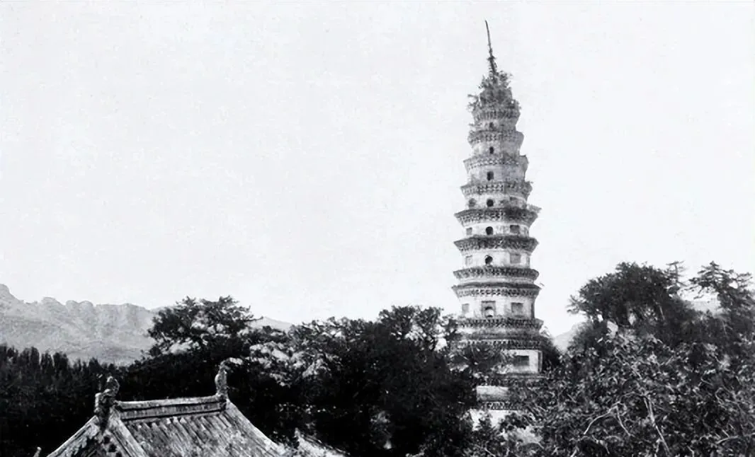这张妙在前景那道绿琉璃的屋脊,兽吻抬头,后面辟支塔像个高个儿守着院子,以前的匠人会玩搭配,深绿压着土黄,塔身一亮,院子就稳住了,现在拍照的人叫这种取景“找前景”,老照片早就会这一手了。