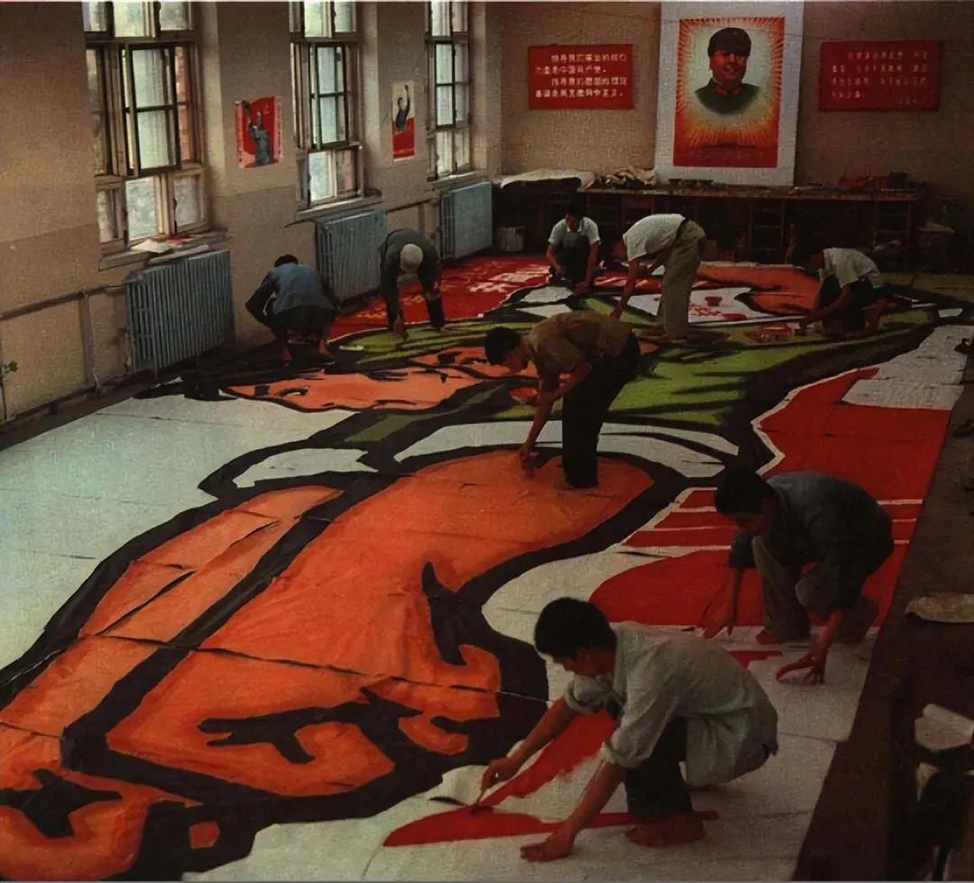 1967年彩色老照片:多人合作制作一张巨幅大字报。
