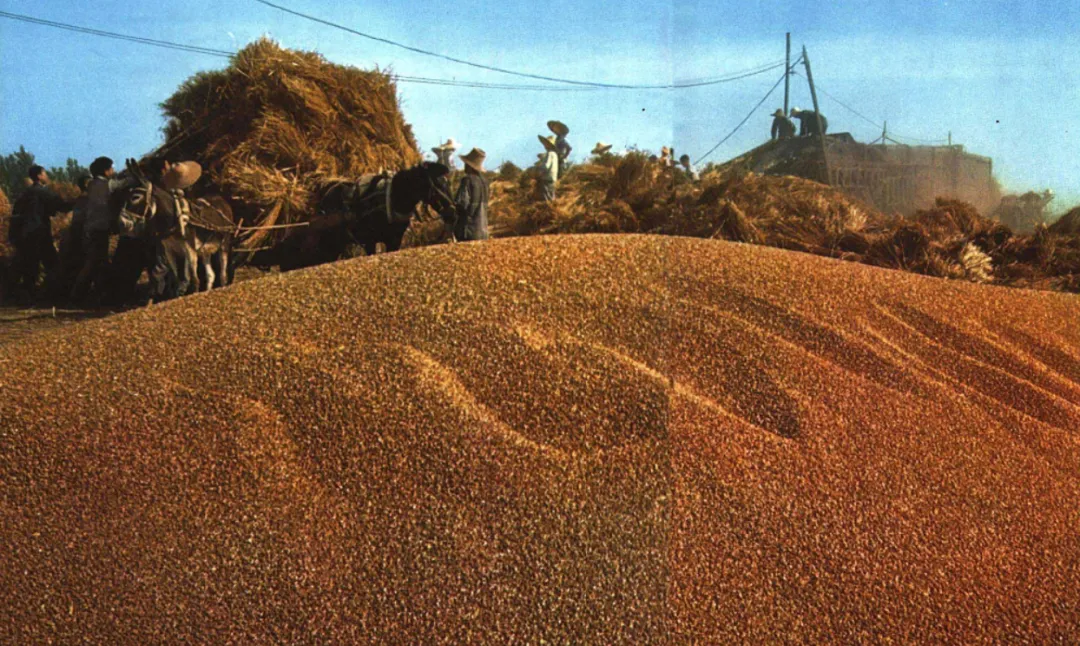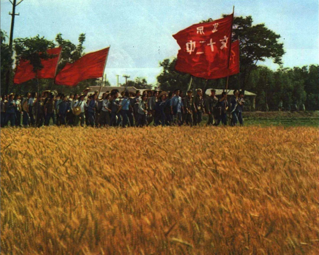 1967年彩色老照片:夏小麦迎来大丰收,红卫兵小将们到农村开展文艺演出。