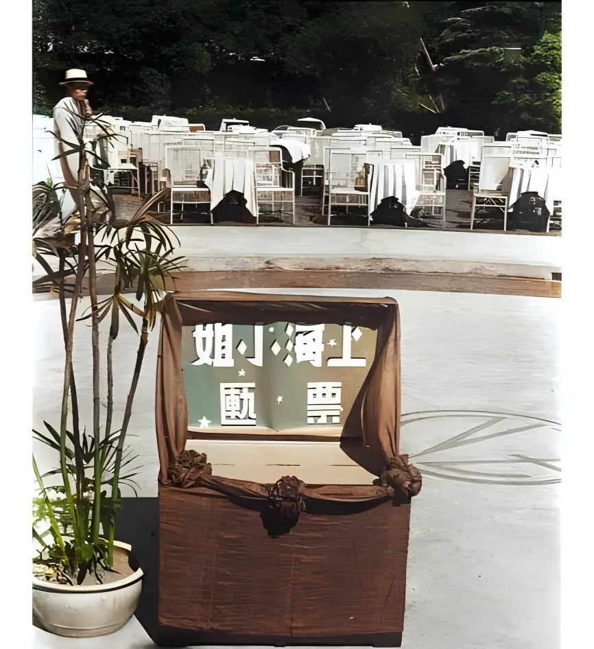这个木头匣子叫捐票台\u2009,\u2002口子上帘子打了两个结\u2009,\u2002露出“上海小姐”几个字\u2009,\u2002旁边摆一盆巴掌大的发财树\u2009,\u2002意思也摆明白了\u2009,\u2002主办人知道上海人爱讲究体面\u2009,\u2002花钱要有个名目\u2009,\u2002把票子投进去\u2009,\u2002就等于把心意搁这儿了。
