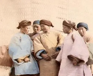 这群穿素色衣裳的女人围在一处叫宫里女眷的合影,袖口宽,头上巾子压得稳,几个人低着头说笑,面料在光下发着淡淡的润,她们脚下站位松松散散,不摆谱,像等人招呼上茶的那会儿,奶奶看见这种旧衣服会叹口气,说那时候做针线不赶工,手一慢,日子也慢。