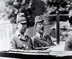 这两个坐敞篷车里的家伙是出巡的军官,帽檐压低,肩章扣得死,车身边沿反着光,后座空着,路树一排拉成虚影,他们的脸紧着,像心里盘着事,镜头抓住了半秒的冷,时代翻篇以后再看,心里头那股拧劲儿还是在。