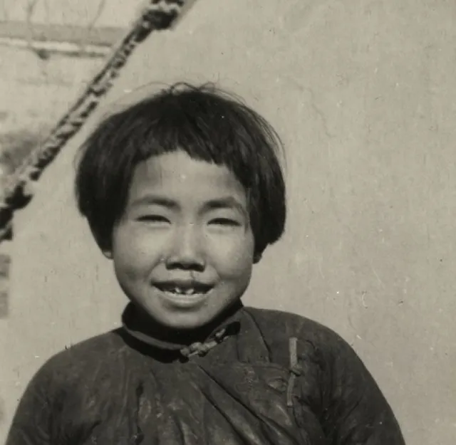 图中丫头的短发剪得齐齐,衣襟斜襟,缝线明晃晃,笑里露着缺牙,她站在墙根,阳光照得眯起眼,那会儿的笑没滤镜,都是土腥和阳光混出来的。