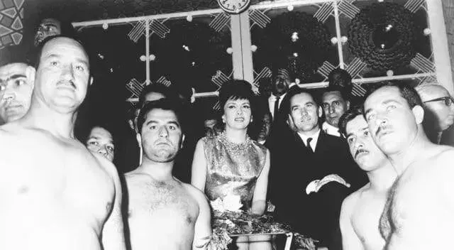 图里的场景叫热闹,搏手站一排,观众把过道挤得满满当当,镜头里那个贵客笑着鼓掌,主持人端着银盘递过去,奶奶看这张老照片总念叨,以前看摔跤是全家活动,赛后去吃烤肉卷,手心都是孜然味。