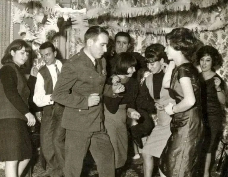 图里这一群人叫当时的潮流弄潮儿,男生八字胡加大领口衬衫,女生披肩长发配亮色连衣裙,手里一把把气球像专门为青春付款,音乐一开,脚下的小碎步就跟着鼓点走,那时候大家最爱在朋友家客厅跳舞,桌上放着汽水和淡啤,邻居听见也不来投诉,只会推门进来一起跳一曲。
