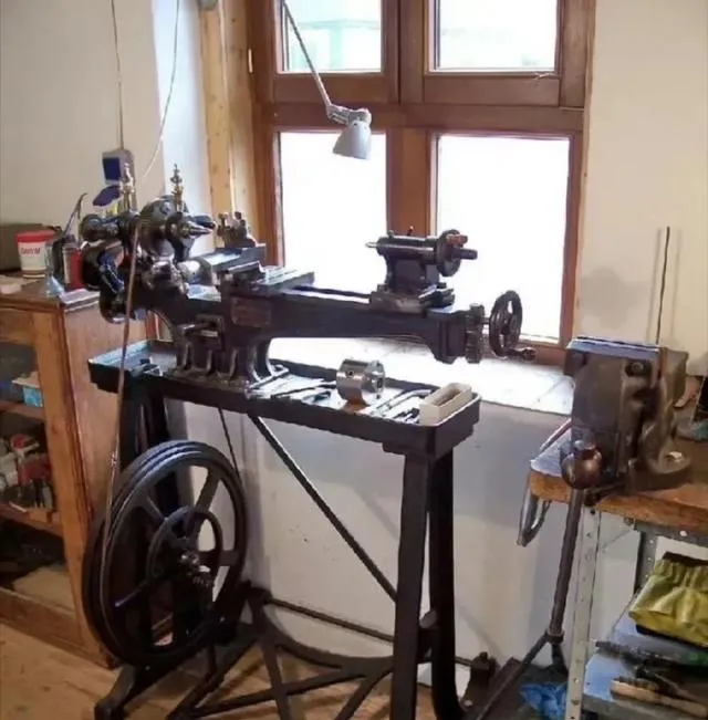 这个铁家伙是脚踩机床,靠皮带和飞轮转动,桌边摆着卡盘刀架,窗台上落着木屑金屑一层灰,师傅一脚一脚踩着,刀尖子往里吃,铁屑像春笋皮那样卷出来,滋啦一声带着热,屋里灯不亮也能干活,靠手感吃饭,邻居家的老表会修收音机和零件,逢年过节有人提着轴承来敲门,嘴里喊“帮我车一刀”,现在数控机一按就成型,精度是上去了,可这脚下把握节奏的劲头,得靠年月攒,急不得。