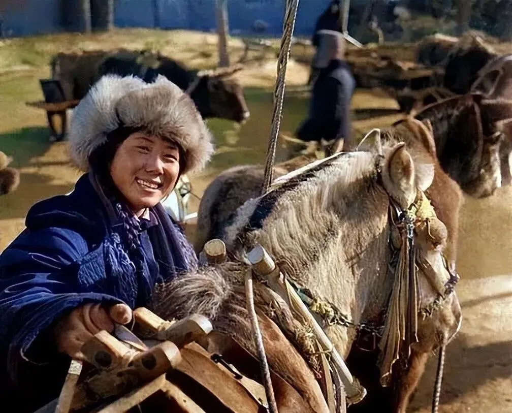 这个毛茸茸的帽子叫狗皮帽,前头的木制拉具是爬犁把,缰绳在掌心勒出一条硬茧,呼出的白气往回打在脸上,年轻人笑得直,手却没松劲儿。