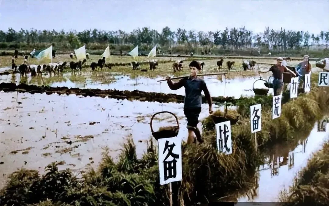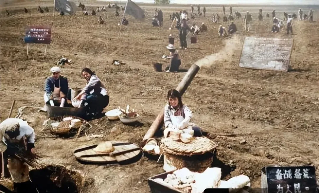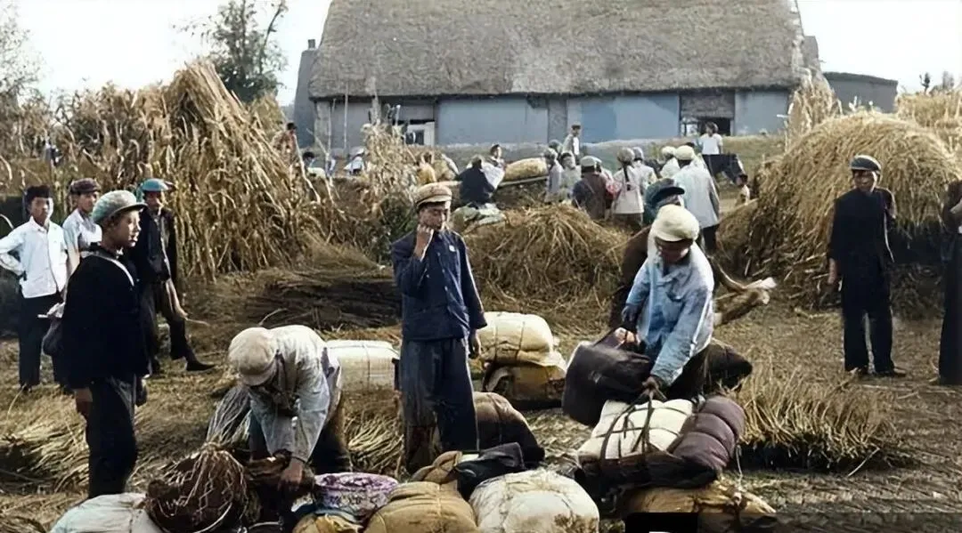图中这一大排旗子叫送行队的排场,黄旗蓝旗招展,巷口挤得满满当当,老乡把鸡蛋塞到孩子手里当**“压惊蛋”**,队伍里有人攥着搪瓷缸,有人拎着铺盖卷,锣鼓点一落,心里也咚咚直跳。